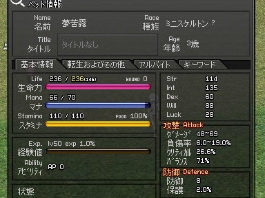 成長率的にお勧めと言われてる3歳でLv50まで上げた結果です。