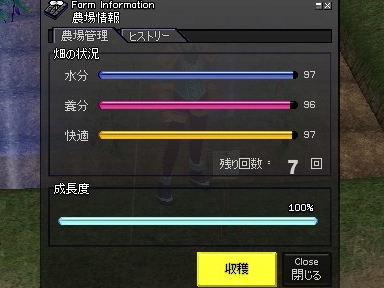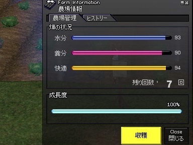 この時点で畑の状態が全部90~を保てているので、収穫可能段階に入れば楽を出来そうですね。